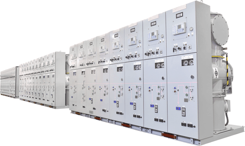 氣體絕緣開關設備,乃以 SF6氣體為絕緣介質之開關設備,具有高安全性、高可靠度、體積小、維護週期長、模組式組合容易及符合環保等特點,尤其適用於高壓69kV級以上變電所,取代傳統變電所內以空氣絕緣之高壓開關設備。